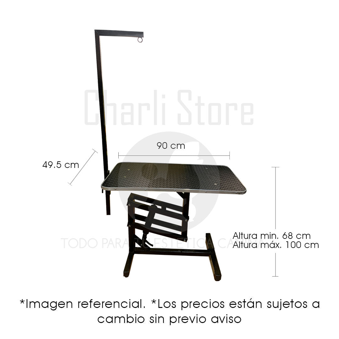 La mesa de pistón 90 x 49.5 cm es una herramienta indispensable para el trabajo profesional en estética canina. Diseñada con una estructura resistente que soporta hasta 80 kg, ofrece seguridad y estabilidad incluso con perros de razas grandes.