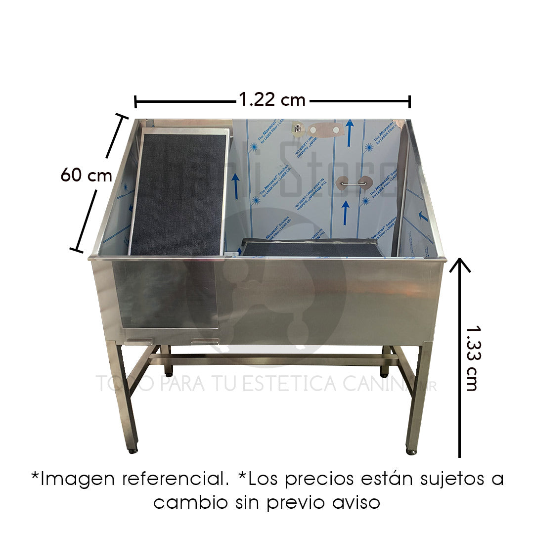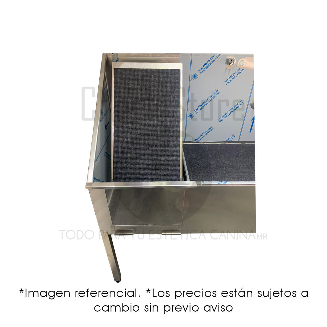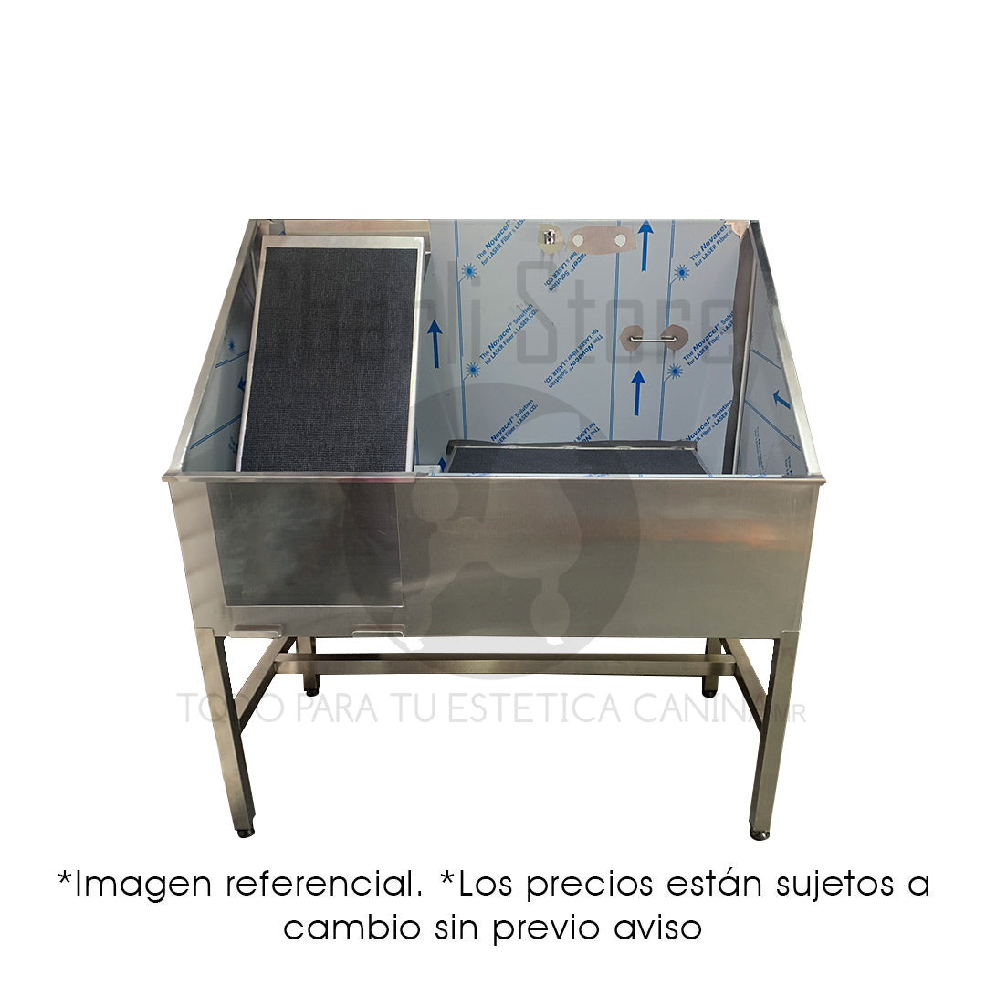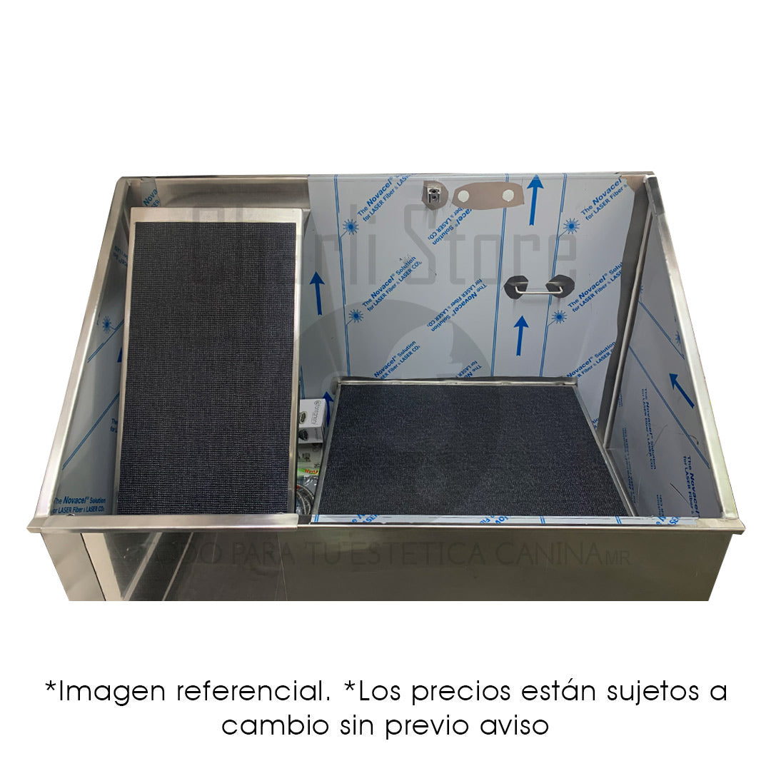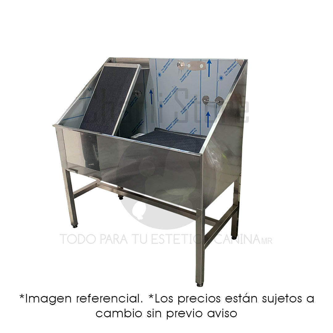 Su estructura permite un flujo de trabajo cómodo, evitando salpicaduras y mejorando la ergonomía tanto del groomer como del animal.